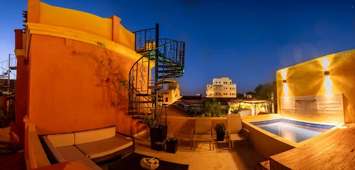 Unique Cartagena Old City 2-bedroom short term rental friendly apartment with private rooftop terrace, plunge pool and stunning city views.
